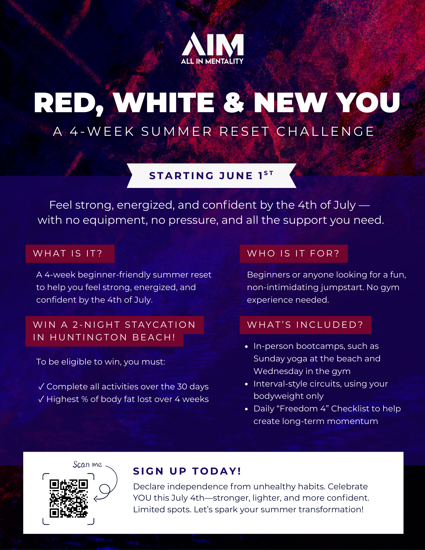 It all starts June 1. We’ll guide you every step of the way. Spots are limited—sign up below and join the Red, White & NEW You movement!